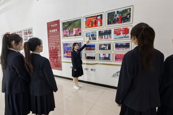 在三楼、四楼区域,清晰展示了三个教研室的的定位、专业特色、师资力量与风采;会议室后墙“立德树人 培根铸魂 守初心”“为党育人 为国育才 担使命”的醒目标语,庄重宣示了学院的根本任务与使命担当。各楼层衔接的电梯间布置了社会主义核心价值观、新时代高校教师职业行为十项准则,以及济源示范区和学校的奋斗和办学目标。