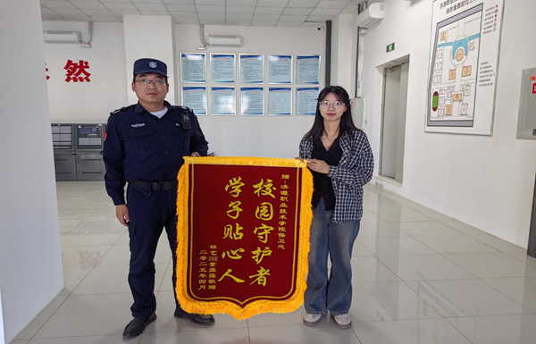 经过及时治疗,董露露同学转危为安。为表达对保卫处及马建锋队员的深深谢意,她特意送来一面锦旗,上书“校园守护者 学子贴心人”,字字饱含感激之情。
