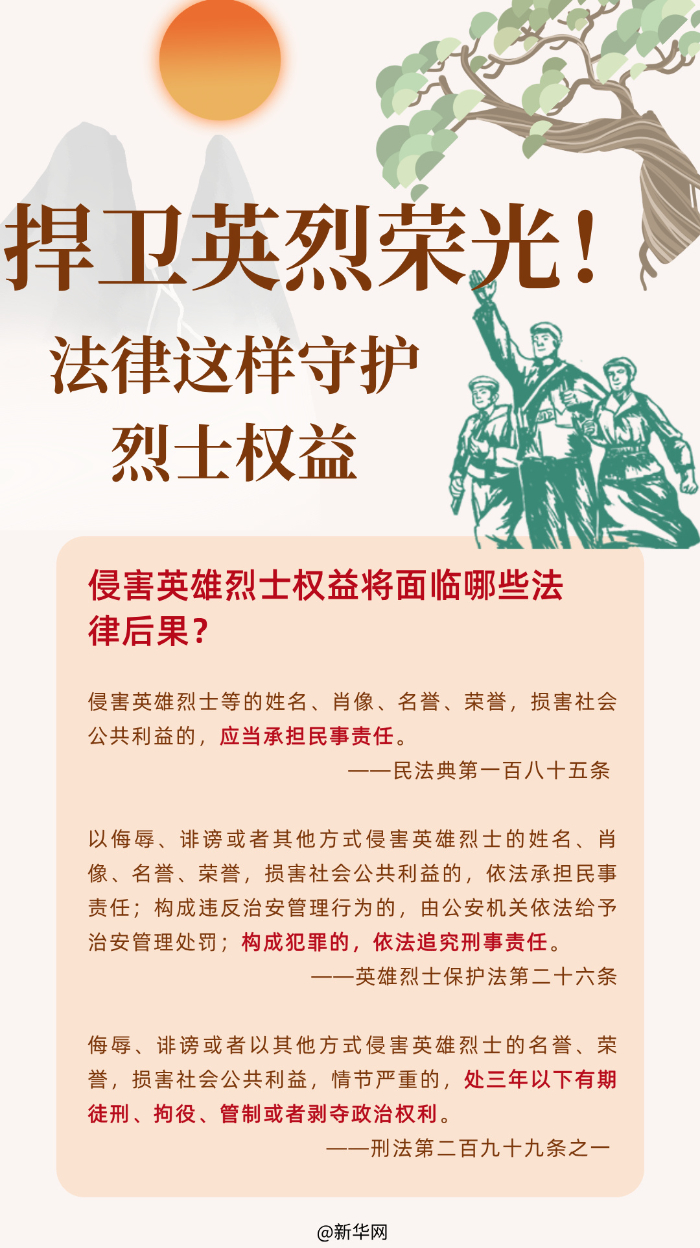 清明节不仅是祭奠先人的时节,也是缅怀革命先烈的重要日子。近年来我国不断加大对英烈权益的法治保障,那么法律在保护英雄烈士和烈属方面有哪些规定?侵害英雄烈士和烈属权益的法律后果是什么?带大家一起学习。