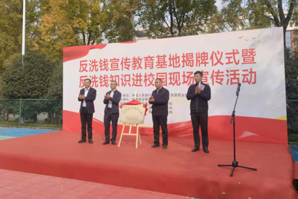 11月4日上午,我校联合中国人民银行济源市分行、中国建设银行济源分行共建的“反洗钱宣传教育基地”揭牌仪式暨反洗钱知识进校园活动在高新校区(西区)举行。副校长叶贵强,中国人民银行济源市分行副行长胡卫国、中国建设银行济源分行副行长王国旗出席仪式并致辞,济源市金融行业协会负责人、37家金融机构主管及业务骨干70余人,我校学生代表100余人参加活动。仪式由学校保卫处负责人主持。