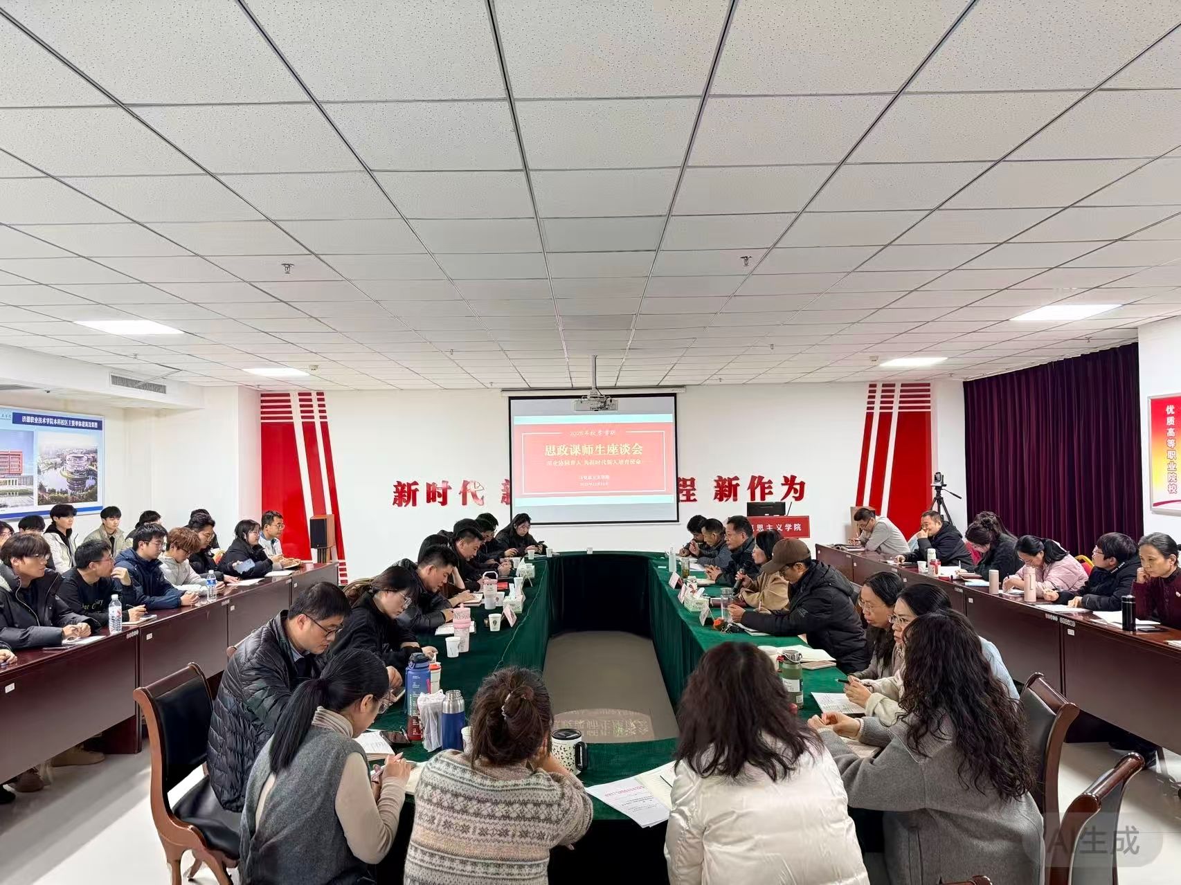 此次座谈会不仅是一次有效的师生面对面沟通,更是一次凝聚育人共识、汇聚改革合力的思想动员。未来,马克思主义学院将继续深入学习贯彻习近平总书记关于思政课建设的重要论述,在今后的工作中,将更加坚定不移地坚持学生主体地位,深入研究并紧密贴合高职院校学生的思想特点、认知规律与发展需求,使思政教育真正入脑入心;更加积极主动地推动教学改革创新,不断更新教学内容、创新教学方法、优化教学载体,着力增强课程的理论穿透力、情感感染力与现实解释力;更加系统有效地促进协同联动,着力健全思政课教师、辅导员、专业教师等多方力量的常态化沟通协作机制,真正构建起目标一致、功能互补、力量互联的“大思政”育人共同体,为培养担当民族复兴大任的时代新人汇聚磅礴合力。