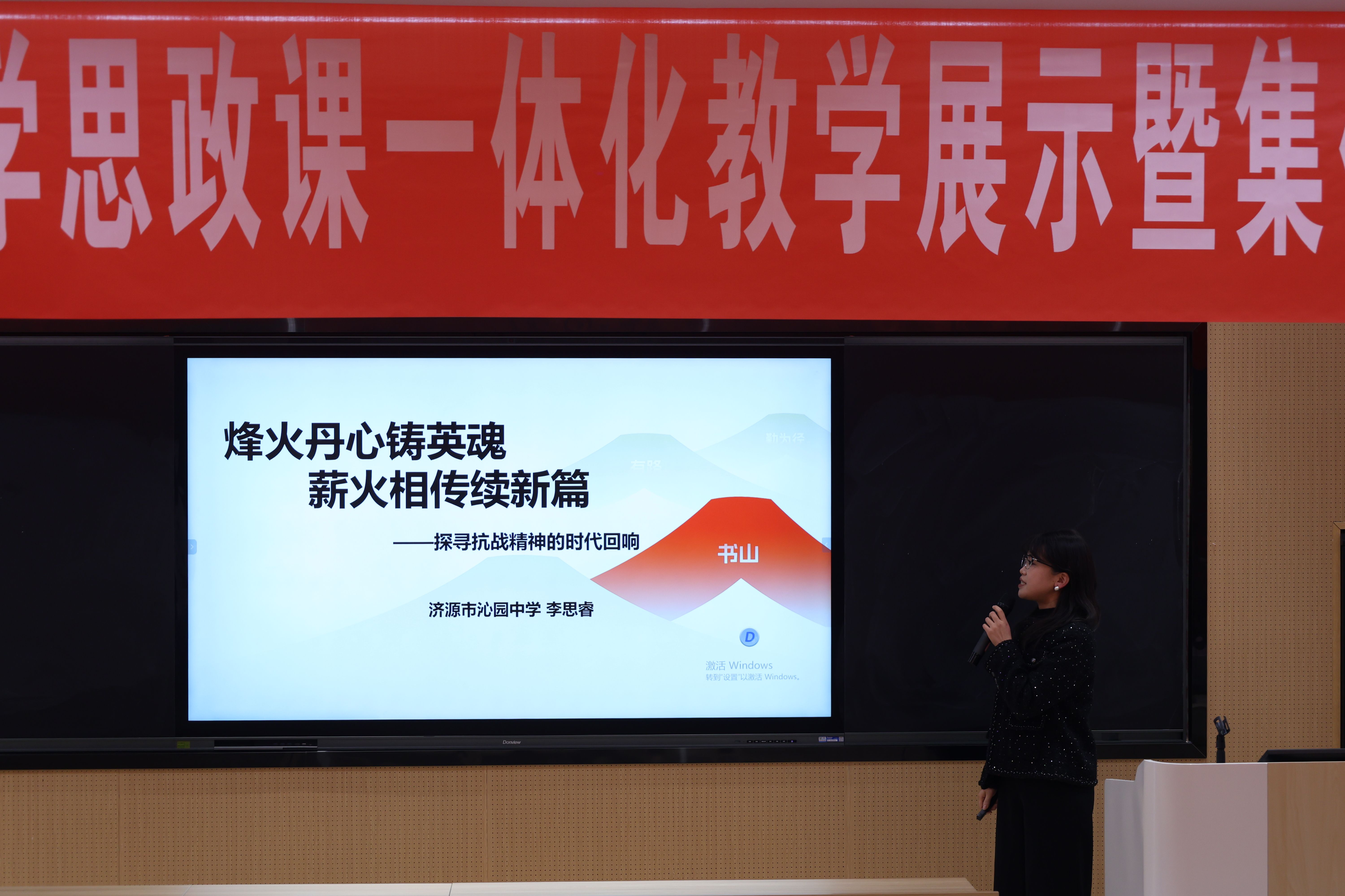 济源市玉川路小学李娟、沁园中学李思睿、高级中学汤艺培、我校马克思主义学院刘永青四位老师,分别围绕“弘扬抗战精神 奋力挺膺担当”主题,立足学生认知规律与成长特点,从作品的设计思路、展示方式及教学启示进行分学段交流。生动诠释了大中小学思政课“各学段有侧重、全链条相贯通”的育人逻辑,为在场教师提供了可借鉴、可推广的实践范例。