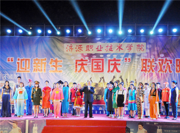9月29日晚,我院2016年“迎新生 庆国庆”文艺晚会在行政楼北广场隆重举行。院长陈学军、副院长王向军,宣传部、教务处、学生处、公共艺术教育中心等职能部门负责人、合作单位嘉宾、沁园校区各系部党总支副书记、团总支书记、新生辅导员与2016级新生一同观看了演出。
